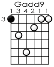 First, play the standard G chord below. Play the notes separately and make sure all the individual notes are clear and ring out. When you are ready, go to the next voicing. The only thing you have to do is move your pinky up two frets. Do the same thing; play each note separately and make sure they all ring out. Try to arpeggiate the notes. Go back and forth between both chords. When you get comfortable with the Gadd9 chord, try moving it up and down the neck. Listen carefully to the add9 chord, it's amazing what the addition of just one note can do.