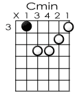 The goal with this exercise is to get the second chord, the Cmin11 under your fingers. I have to be honest, this chord will take a little work. Be patient, it's worth it. This voicing sounds more like what a pianist would play. Start off by playing the two chords without the roots first. When you get comfortable with it, add in the roots. Because of all the wide intervals, this min11 voicing is very open sounding.