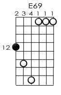 For this one I took the previous major add9 shape moved it down a fret and opened up the first and sixth string. What we get is a beautiful Emaj13 chord with a 9th added in for good measure. You can do a lot with one shape if you have an open mind, curiosity and understand theory a little.
