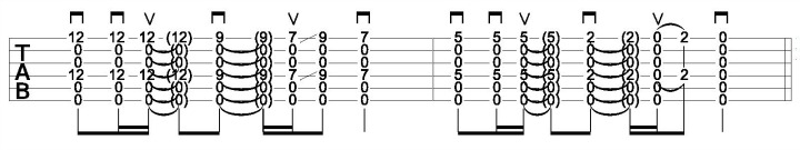 Notice the great sound you get here with a simple chord shape, broken up into single notes.
