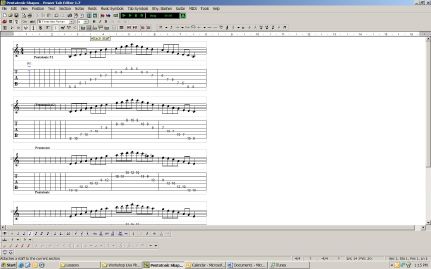 After that you had the main section of the lesson which could consist of three exercises, for example. They would have to be notated out ahead of time. I used the free program PowerTab 1.7 for this job.